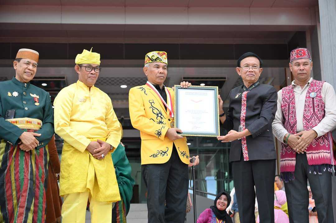 Piagam Rekor MURI yang menjadi kebanggaan bagi seluruh masyarakat Kabupaten Ketapang itu diserahkan secara langsung oleh Direktur Operasional Rekor MURI, Yusuf Ngadri kepada Bupati Ketapang Martin Rantan sebagai penyelenggara tarian dan sajian tersebut.
