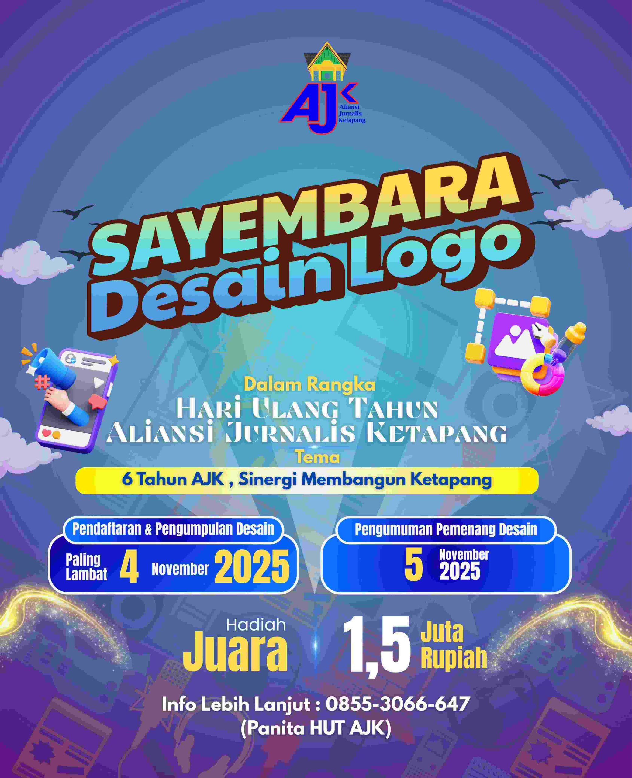 METROKALBAR, Ketapang – Dalam rangka memperingati Hari Ulang Tahun (HUT) ke-6, Aliansi Jurnalis Ketapang (AJK) resmi menggelar Sayembara Desain Logo yang terbuka bagi masyarakat Kabupaten Ketapang.