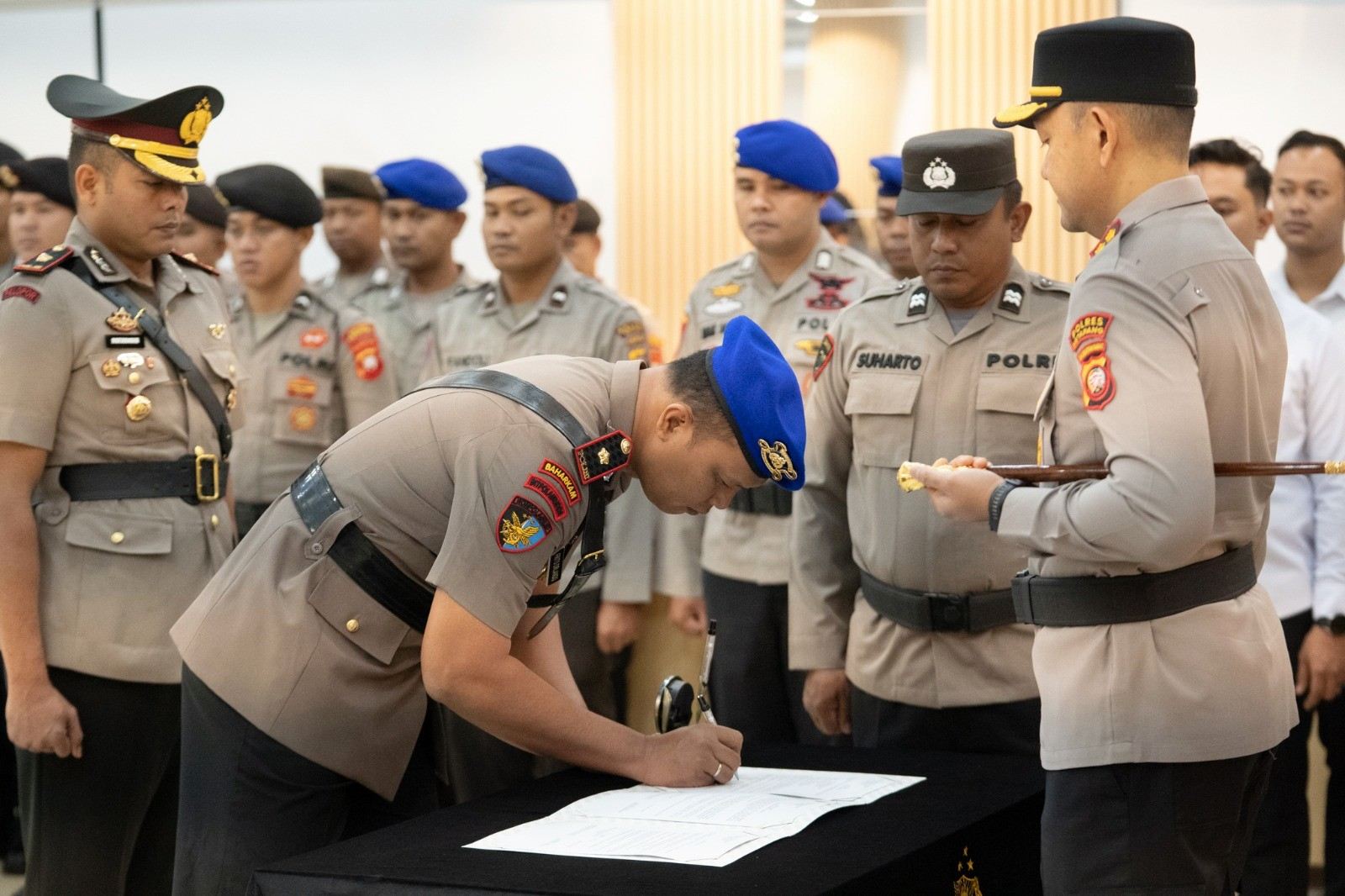 Upacara Sertijab berlangsung dengan khidmat dan tertib, dihadiri oleh para Pejabat Utama Polres Ketapang, para Kapolsek jajaran, perwira, bintara, serta ASN.