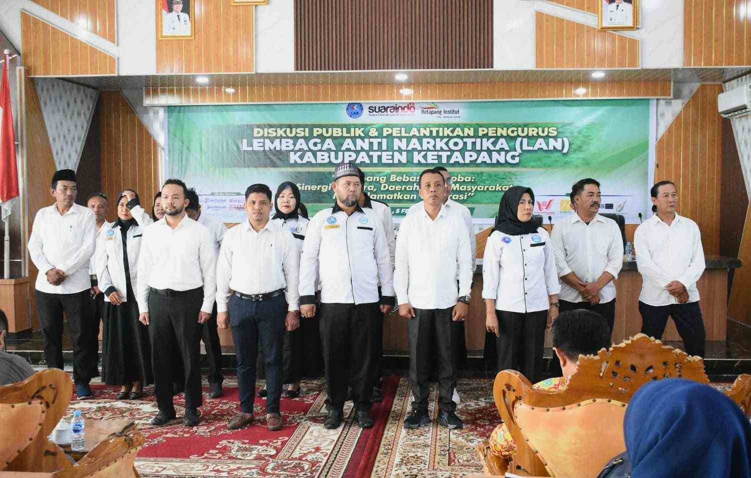 METROKALBAR, Ketapang – Lembaga Anti Narkotika (LAN) Kabupaten Ketapang menyelenggarakan Diskusi Publik sekaligus Pelantikan Pengurus di Ruang Rapat Kantor Bupati, dengan tema “Ketapang Bebas Narkoba: Sinergi Negara, Daerah, dan Masyarakat Menyelamatkan Generasi”.pada Kamis 05/02/26.