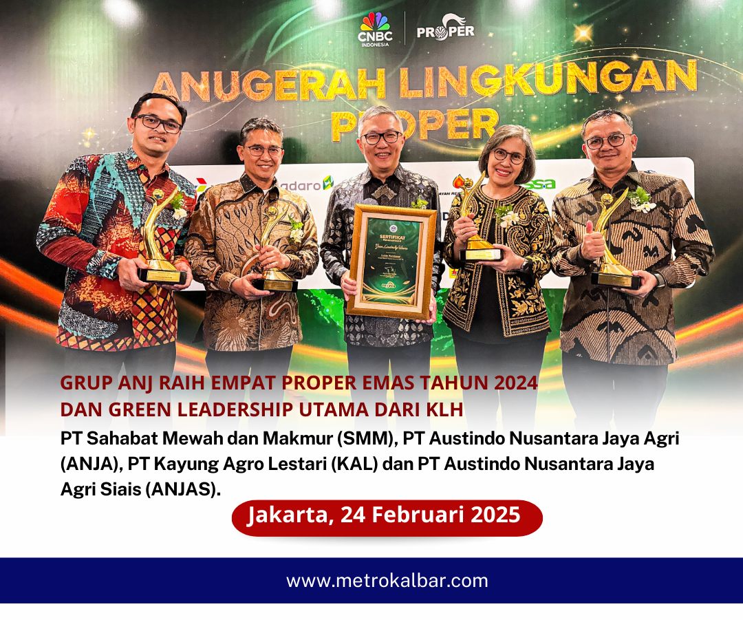 Grup ANJ Raih Empat Proper Emas Tahun 2024 dan Green Leadership Utama dari KLH